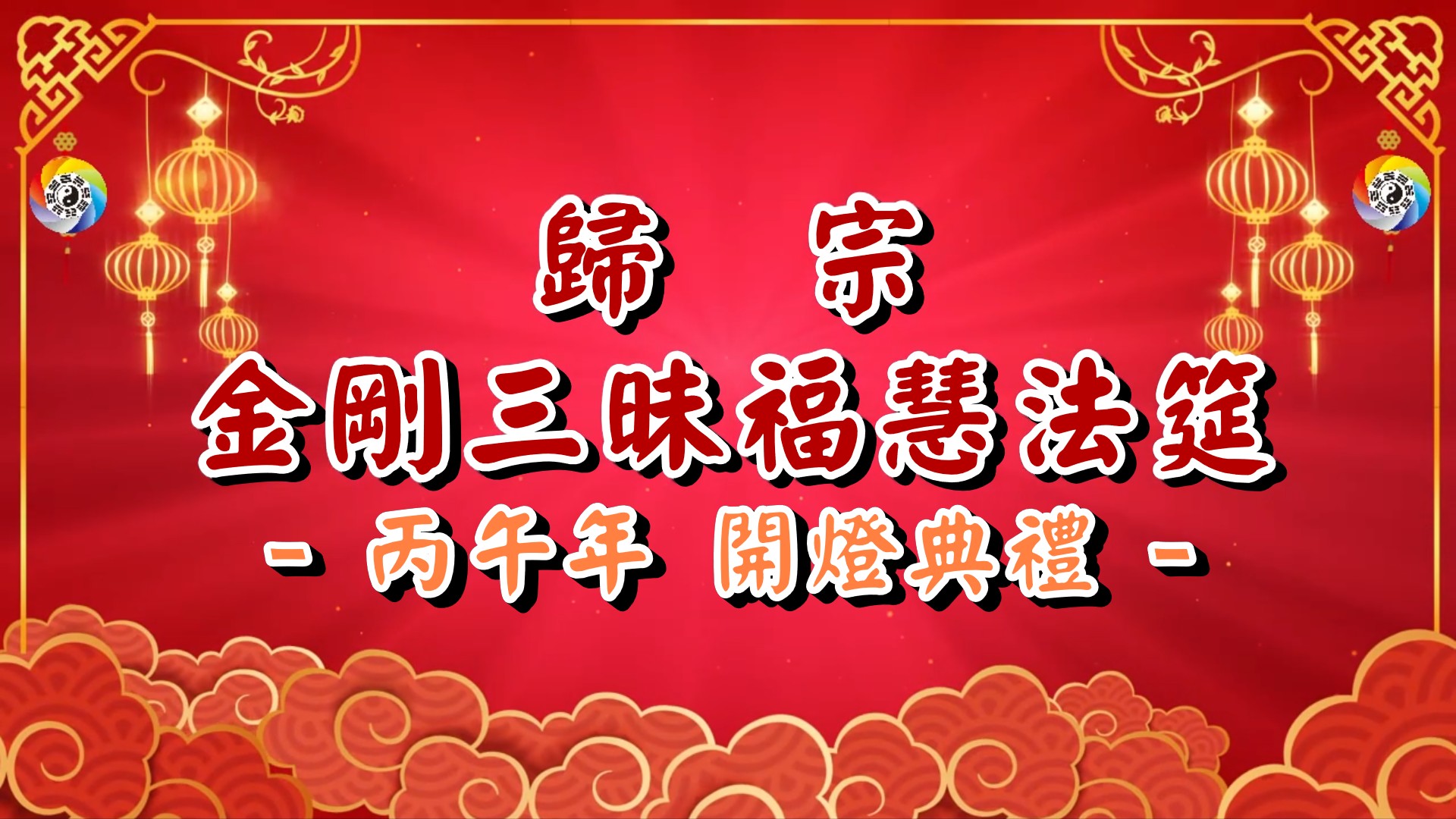 歸宗承領新天命道脈【歸宗金剛三昧福慧法筵-元年】於丙午年啟辦,首屆法筵已於農曆正月十八日~二十日功德法喜圓滿,感恩仙佛恩賜天命妙法,感謝所有參與服務的鸞信大德、聖職幹部、各宮院主事,誠心奉獻,行功立德,因為有您,法筵得以法喜圓滿、莊嚴祥和,願此法筵法益雙迴裨臻福德累積與智慧啟發。
