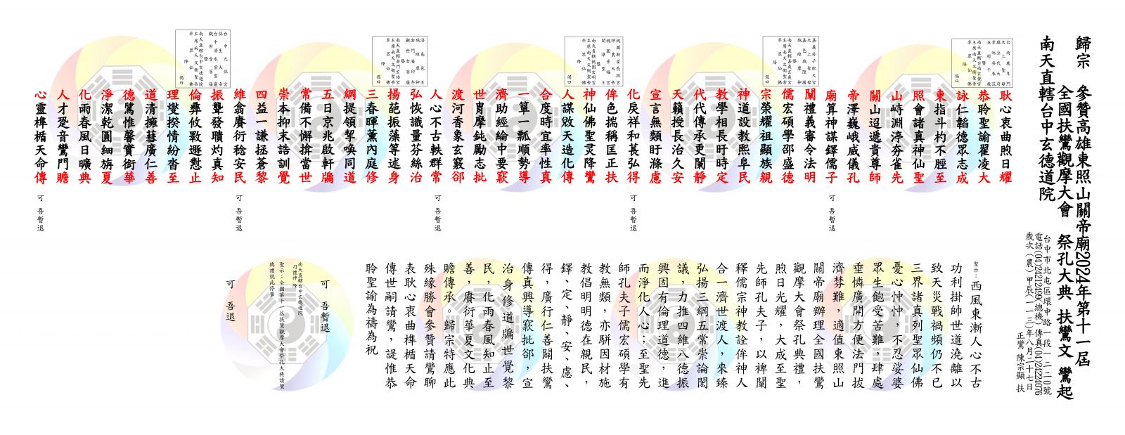 國曆113年9月29日(農曆甲辰年八月二十七日)於參贊高雄東照山關帝廟 2024第十一屆全國扶鸞觀摩大會暨祭孔大典 扶鸞典禮。