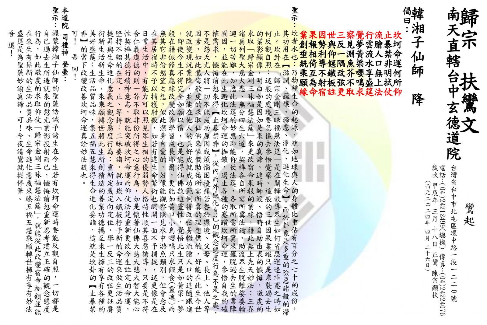 感恩~韓湘子仙師聖示: